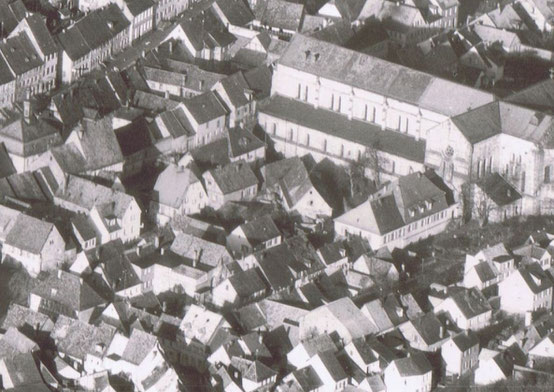 Innerhalb der Strassen, Gerberstrasse, Lutherstrasse und ein Stück der Kirchstrasse war früher der Sammelplatz für das Vieh in der Stadt (genannt das Enteneck). Dort wurden morgens Schweine Enten und Gänse zusammen getrieben und von einem Viehhüter zum Heiligenmoschelerberg zum Grasen gebracht. Er ging mit seiner Tröte voraus und alle Tier folgten ihm. Wenn ein Bewohner vergessen hat seinen Tier aus dem Stall zu lassen und die Tiere das Tröten gehört haben wurden sie sehr unruhig und machten Lärm, weil sie mit wollten.)